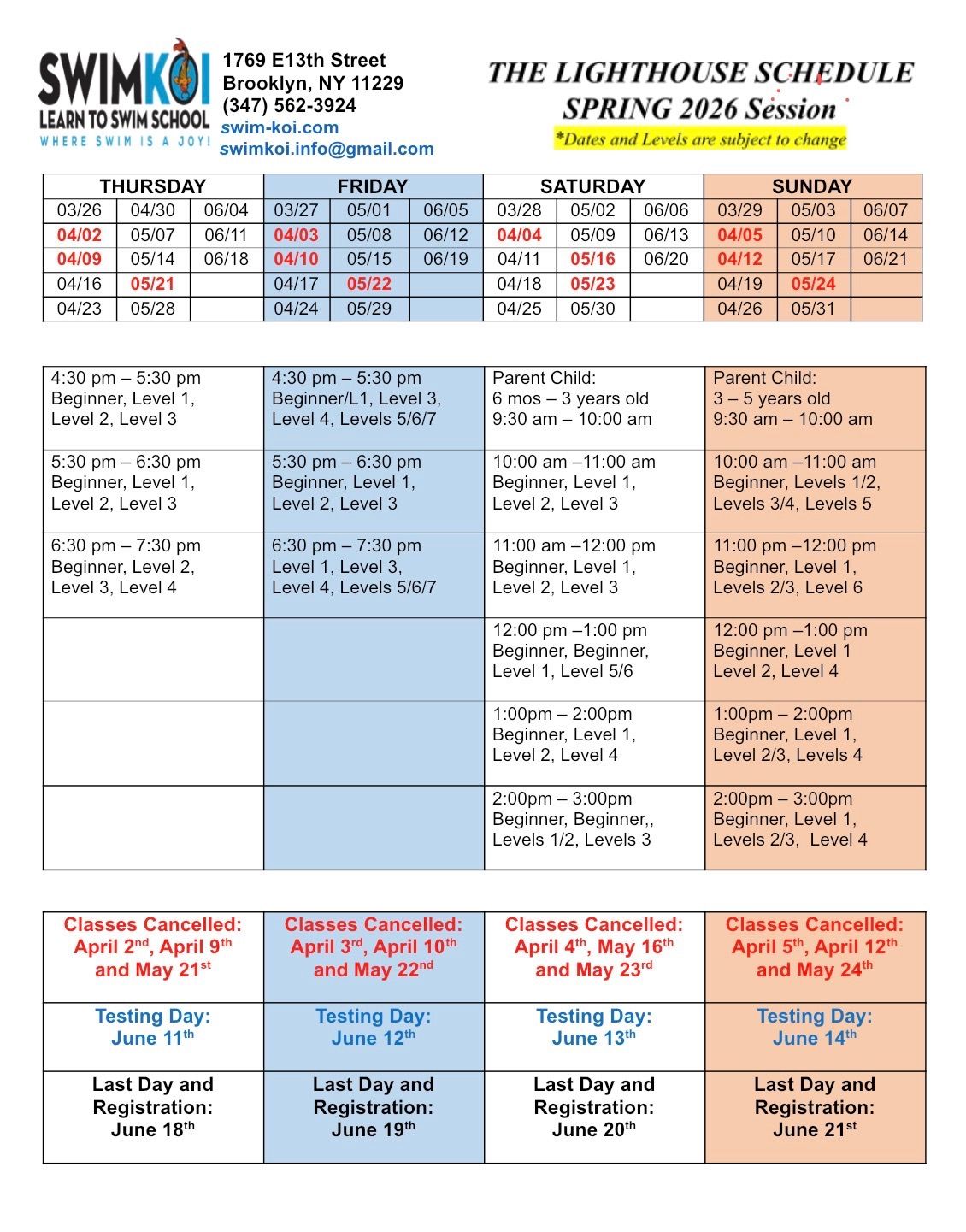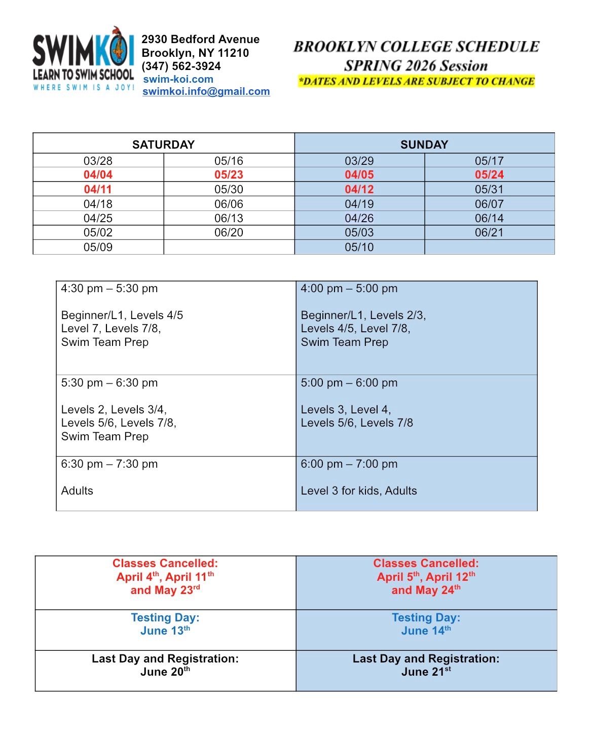 SPRING 2026 SCHEDULES